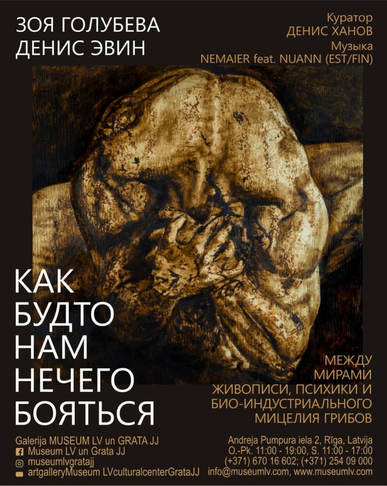 Такую попытку фиксации пространства страшного создали два художника – Зоя Голубева и Денис Эвин. Разнятся их почерки и средства художественного выражения – от цифровых технологий и компьютерных отходов, через зеркальные иллюзии отживших механизмов к чайным грибам-одиночкам Дениса, мечтающим найти способ рассказать о своем одиночестве. Полотна Зои, отсылающие зрителя к классической традиции европейской живописи периода барокко, рассказывают истории отчаяния, одиночества и ужаса внутренней темноты человеческой личности.