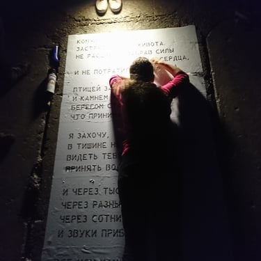 Slovo - стрит-арт проект, в котором текст стихотворения, нанесённый на бетонные плиты морского мола, стирается под действием волн, реализуя заложенный в него смысл.